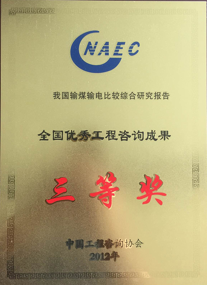 全國優(yōu)秀工程咨詢成果三等獎(2012年)