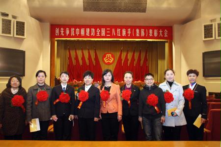 大會隆重表彰了在創(chuàng)先爭優(yōu)活動中涌現(xiàn)出的全國三八紅旗手標兵、全國三八紅旗手(集體)及城鄉(xiāng)婦女崗位建功先進集體和個人。中國中鐵股份有限公司工會女職工委員會主任劉建媛同志作為中央企業(yè)獲獎代表上臺參加了授獎儀式。