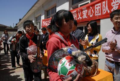 國資委直屬機關郭明義愛心團隊公益活動 穿過重重煙霧,沿著唯一一條通向學校的泥濘公路來到三河市段甲嶺鎮蔣福山小學。這里交通閉塞,環境污染嚴重,經濟落后,但是這些都沒有使這里的孩子們放棄求學的欲望,反而激發起了大家更強烈的學習熱情和改變家鄉的愿望??吹?50多個孩子稚嫩、純樸、可愛的笑臉,志愿者們心情非常激動,紛紛把帶來的學習用品和體育用品送到孩子們手中。隨后,大家來到課堂上,為孩子們傳授科學文化知識,回答孩子們提出的問題,鼓勵他們熱愛學習,要努力學習科學文化知識,做一個勇敢、堅強、有益于社會的人。志愿者們在表演了自編的節目后,又來到操場上,和孩子們共同做游戲,并植下了愛心樹,祝愿孩子們能在社會各界愛心人士的幫助下和關心下茁壯成長,將來成為社會主義合格的建設者和接班人。