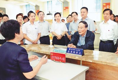 王岐山在哈爾濱市撫順社區辦事大廳調研?! ⌒氯A社記者攝