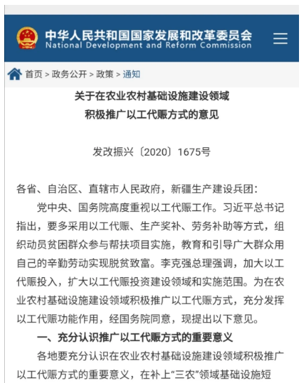 ——《關于在農業農村基礎設施建設領域積極推廣以工代賑方式的意見》政策解讀