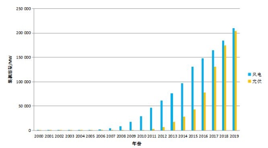 摘 要 “十三五”時期我國新能源發展成效顯著,預計在“十四五”時期增長潛力巨大,成為我國能源轉型升級的重要力量。本文展望了“十四五”時期新能源發展形勢,規劃分析了“十四五”時期新能源發展布局,提出了“十四五”時期新能源發展相關建議。 關鍵詞:“十四五”;新能源;發展形勢;發展建議 以風電、光伏發電技術為代表的新能源產業日趨成熟,成本不斷下降,開發利用規模持續擴大,成為全球能源轉型的重要發展方向。發展新能源已成為許多國家推進能源轉型的核心內容和應對氣候變化的重要途徑,也是我國深入推進能源生產和消費革命、促進大氣污染防治的重要手段。在本文的論述中,新能源主要指風力發電及光伏發電。 一、“十三五”時期新能源發展情況 “十三五”時期,我國新能源發展成效顯著,裝機規??焖僭鲩L,開發布局不斷優化,技術水平顯著提升,度電成本持續下降,政策體系逐步完善,新能源已經從補充能源進入到主力能源的發展階段。截至2019年末,全國風電累計裝機21005萬千瓦,其中陸上風電累計裝機20412萬千瓦、海上風電累計裝機593萬千瓦;全國光伏發電累計裝機達到20430萬千瓦,其中集中式光伏14167萬千瓦,分布式光伏6263萬千瓦[1][2]。風電和光伏發電裝機容量均實現“十三五”規劃目標。 圖1 我國風電及光伏裝機總量變化趨勢 “十三五”時期,新能源發展還存在一系列問題:整體規劃布局執行不嚴,部分送出線路建設進度較慢,滯后于項目建設進度;部分項目受國土空間“三條紅線”影響,出現容量核減甚至整體取消的情況;“三北”地區消納能力不足,整體棄風棄光比例較高;分散式風電規模效應較差、審批流程繁瑣、并網困難,發展較為緩慢;項目搶裝導致產業鏈上游供應緊張,設備價格增長較快,存在設備、施工方面的質量風險。 我國需要做好新能源從“十三五”到“十四五”發展的平穩過渡,重點關注:按風電、光伏發電年度開發方案的要求,按時保質完成現有項目的建設;繼續推進競爭方式配置項目,對于規模效益較強的特高壓外送基地項目開展項目競標工作,在平價基礎上進一步降低上網電價;支持新技術的應用和技術改造升級項目,實現風電全面平價上網、光伏發電由用戶側平價到發電側平價的轉變;重點支持脫貧地區新能源項目,保障項目收益,鞏固脫貧攻堅成果。 二、“十四五”時期新能源發展特征 能源的清潔、綠色、低碳發展是全球的根本趨勢。目前,大部分發達國家已經完成了能源清潔化的進程,穩步開展低碳化的進程,中國已經明確把清潔低碳安全高效作為能源發展的戰略選擇。 2014年習近平總書記就推動能源生產和消費革命提出了“四個革命、一個合作”的能源新戰略,國務院頒布了中國能源清潔革命的行動計劃。2015年中國向國際社會提交了自主貢獻的行動目標,提出了到2020和2030年,非化石能源占比分別達到15%和20%,GDP的碳強度分別比2005年下降40~45%和60~65%,以及2030年左右二氧化碳排放達到頂峰的目標[3]。綜合判斷,“十四五”時期新能源發展主要有以下幾個重要特征: 一是能源供應綠色低碳清潔化?!笆奈濉睍r期,非化石能源將主要承擔新增電力供應,新能源將作為主力供應形式。水電面臨開發條件逐步轉差、環境敏感因素增多、移民安置難度增大等問題;核電的公眾接受度普遍較低,眾多項目未能按規劃預期核準和開工建設。新能源具有開發門檻相對較低、建設周期短、成本快速下降的優勢,具備承擔電力新增供應能力的基礎。根據資源稟賦和土地供應情況,初步分析“十四五”時期新能源可以實現規模再翻一番的基本條件。預計到“十四五”末期,風電裝機達到4億千瓦,光伏發電裝機達到5億千瓦,風電發電量比重達到10%,光伏發電量比重達到7%,成為電力供應的重要組成部分。 二是電力系統適應新能源接入。新能源大規模并網帶來的系統電力電子化問題,驅動電力系統深度重構。從電氣特性看,電力系統等值轉動慣量大幅度降低,系統抗擾動能力大幅削弱;從故障特性看,故障沖擊從局部向全局形成連鎖反應沖擊,新的故障形態、擾動形式已經出現;從穩定特性看,系統穩定形態愈發復雜?!笆奈濉睍r期,需要進一步研究新能源高比例接入現有電網體系的安全措施,加快解決電力系統特性變化帶來的技術挑戰,保證高比例可再生能源的接網消納和電網的穩定運行[4][5]。 三是新能源數字化智能化發展。在新一輪科技革命與產業革命的驅動下,大數據、人工智能在全球范圍內與傳統產業深度融合,“智能工廠”“智能生產”和“智能物流”等主題不斷涌現。各發達國家聚焦工業互聯網、智能制造,圍繞標準、平臺、技術、應用、產業等進行全方位競爭,以搶占技術創新的制高點[6]。我國新能源高質量發展的一項重要任務是推動新能源與現代信息技術深度融合,構建智慧能源系統。隨著新能源領域的智能場站、智能微網、虛擬電廠等技術基礎與產業經驗逐步積累,新能源產業的數字化、智能化已具備大規模發展條件。 三、“十四五”時期新能源布局態勢 “十四五”時期,新能源發電將形成大規模集中利用與分布式就地生產消納的平衡發展態勢。