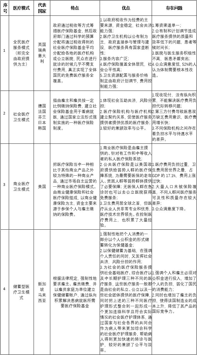 摘要:通過對當(dāng)前世界醫(yī)療衛(wèi)生主流模式和我國醫(yī)療衛(wèi)生模式的比較分析,研究提出構(gòu)建具有中國特色社會(huì)主義新型醫(yī)療衛(wèi)生體制的若干建議,以期對世界廣大發(fā)展中國家提供良好示范,對助力構(gòu)建健康中國和人類衛(wèi)生健康命運(yùn)共同體具有重大戰(zhàn)略意義和現(xiàn)實(shí)意義。 關(guān)鍵詞:新醫(yī)改;醫(yī)療衛(wèi)生模式;基本公共醫(yī)療 醫(yī)療衛(wèi)生事業(yè)是關(guān)系億萬人民健康和千家萬戶福祉的重大民生工程。適應(yīng)人民群眾日益增長的醫(yī)療衛(wèi)生需求,加強(qiáng)中國醫(yī)療衛(wèi)生體制的改革進(jìn)程(以下簡稱醫(yī)改),加快發(fā)展和完善我國醫(yī)療衛(wèi)生事業(yè)體制,是維護(hù)社會(huì)公平正義,不斷提高人民群眾身體健康水平,是推動(dòng)中國社會(huì)未來綠色健康發(fā)展的前提條件和必然要求。 醫(yī)療衛(wèi)生體制的改革是一個(gè)非常復(fù)雜的世界性難題,也是我國堅(jiān)持以人民為中心,向第二個(gè)百年目標(biāo)邁進(jìn),由富起來到強(qiáng)起來,實(shí)現(xiàn)新時(shí)代社會(huì)主義健康中國改革的必由之路。通過對當(dāng)前世界醫(yī)療衛(wèi)生主流模式和我國醫(yī)療衛(wèi)生模式的比較分析,構(gòu)建有中國特色社會(huì)主義新醫(yī)療衛(wèi)生體制,對世界廣大發(fā)展中國家提供良好示范,助力構(gòu)建健康中國和人類衛(wèi)生健康命運(yùn)共同體都具有重大的戰(zhàn)略意義和現(xiàn)實(shí)意義。 一、世界醫(yī)療衛(wèi)生主流模式 醫(yī)療衛(wèi)生服務(wù)屬于公共服務(wù)范疇。長期以來,受地緣政治、經(jīng)濟(jì)社會(huì)發(fā)展水平不同的影響,世界各國政府都在致力于合理配置醫(yī)療資源,建立公平與效率相對平衡的醫(yī)療體制,但難度較大。依據(jù)《醫(yī)保改革的經(jīng)濟(jì)學(xué)分析》,當(dāng)前世界醫(yī)療衛(wèi)生主流模式可歸納為三大途徑(完全由政府公共部門提供、完全市場化、政府公共部門與私營部門合作提供),和四大主流模式: (一)全民醫(yī)療服務(wù)模式 全民醫(yī)療服務(wù)模式是以英國為代表的由政府提供以社會(huì)福利性質(zhì)為主的公共醫(yī)療制度,其中較為典型的國家包括瑞士與意大利等。國家衛(wèi)生服務(wù)體系(National Health System,簡稱為NHS)作為英國醫(yī)療衛(wèi)生體系最為重要的基礎(chǔ),由社會(huì)的基本護(hù)理機(jī)構(gòu)、地區(qū)醫(yī)院和中央醫(yī)療服務(wù)機(jī)構(gòu)三級醫(yī)療服務(wù)機(jī)構(gòu)組成。政府通過稅收等方式籌措醫(yī)療保險(xiǎn)基金,然后通過各地政府部門的預(yù)算分配,將由稅收得到的醫(yī)療保險(xiǎn)基金平均撥付給相關(guān)醫(yī)療機(jī)構(gòu)或醫(yī)院,社會(huì)民眾在就診的時(shí)候基本不需支付費(fèi)用,真正實(shí)現(xiàn)了全體國民的免費(fèi)醫(yī)療服務(wù)全覆蓋。 全民醫(yī)療服務(wù)模式的優(yōu)點(diǎn)有:以政府稅收作為經(jīng)費(fèi)的主要來源,資金來源穩(wěn)定,社會(huì)共濟(jì)能力強(qiáng);衛(wèi)生機(jī)構(gòu)以公有制為主,政府直接參與醫(yī)療機(jī)構(gòu)的管理與建設(shè),醫(yī)療服務(wù)具有國家壟斷性;所有醫(yī)療服務(wù)作為公共品向全民免費(fèi)提供;醫(yī)療保險(xiǎn)覆蓋全體居民,社會(huì)公平性高;衛(wèi)生資源配置與服務(wù)價(jià)格制定由政府計(jì)劃調(diào)節(jié),費(fèi)用控制能力強(qiáng)等。同時(shí),也存在籌資渠道單一,公有制和計(jì)劃調(diào)節(jié)造成醫(yī)療服務(wù)提供的質(zhì)量和效率低下、患者等候時(shí)間長,醫(yī)院與醫(yī)生服務(wù)積極性不高、醫(yī)患矛盾突出,公眾滿意度低等問題。 (二)社會(huì)醫(yī)療保險(xiǎn)模式 社會(huì)醫(yī)療保險(xiǎn)模式是以德國為代表的,由雇主和雇員按一定比例繳納保險(xiǎn)費(fèi),建立社會(huì)保險(xiǎn)基金用于看病就醫(yī),通過國家立法形式強(qiáng)制實(shí)施的一種醫(yī)療保險(xiǎn)制度。類似國家還有法國、芬蘭、日本等。德國的社會(huì)醫(yī)療保險(xiǎn)是由法定醫(yī)療保險(xiǎn)和社會(huì)的私人醫(yī)療保險(xiǎn)兩個(gè)部分共同構(gòu)成的,德國民眾能夠自主選擇二種不同的醫(yī)療保障;也可以選擇在參加了法定醫(yī)療保險(xiǎn)的基礎(chǔ)之上,再額外購買社會(huì)的私人醫(yī)療保險(xiǎn),由此可以更好的享受補(bǔ)充醫(yī)療保險(xiǎn)帶來的福利和優(yōu)惠。德國的醫(yī)院主要包括由政府出資建立并管理的公立醫(yī)院、由政府建立并委托給私人機(jī)構(gòu)經(jīng)營的私立營利醫(yī)院以及由教會(huì)和慈善機(jī)構(gòu)建立并管理的私立非營利醫(yī)院三種類型。社會(huì)醫(yī)療保險(xiǎn)機(jī)構(gòu)共100多家,以非政府、非營利性質(zhì)的“疾病基金協(xié)會(huì)”為主體,參保者可自愿選擇,社會(huì)醫(yī)療保險(xiǎn)制度已經(jīng)覆蓋了德國90%的人口,商業(yè)保險(xiǎn)占比僅為9%。 社會(huì)醫(yī)療保險(xiǎn)模式的優(yōu)點(diǎn)有:體現(xiàn)社會(huì)互助共濟(jì),風(fēng)險(xiǎn)分擔(dān);醫(yī)療保險(xiǎn)機(jī)構(gòu)與醫(yī)療機(jī)構(gòu)建立契約關(guān)系,促使醫(yī)療服務(wù)提供者提供優(yōu)質(zhì)的醫(yī)療服務(wù);較好的