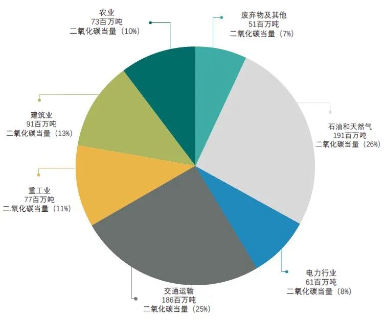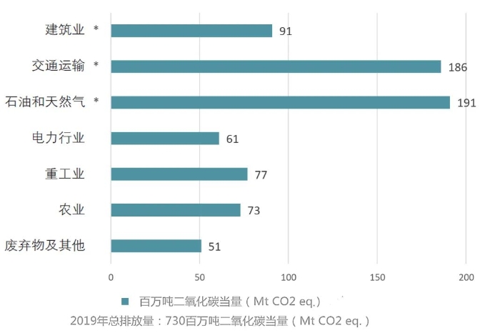 圖1 加拿大各行業最新碳排放數據(2019年)