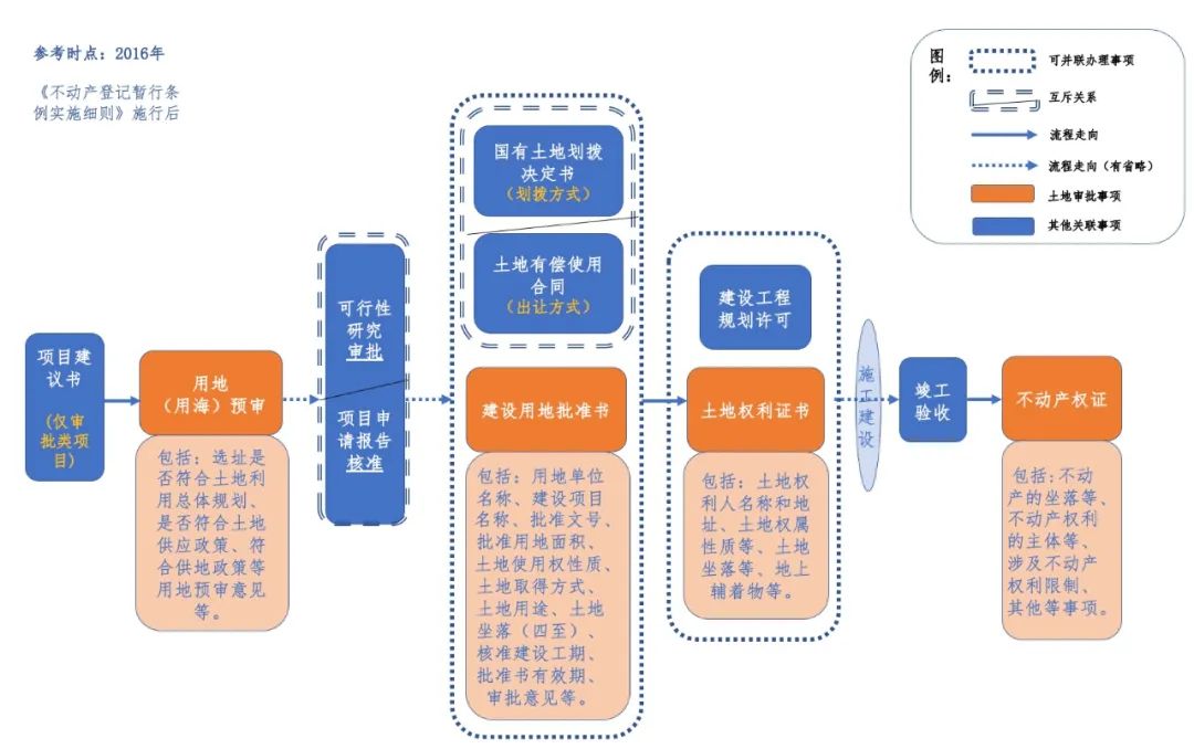 編者按 新中國成立以來,我國基礎設施投資建設取得了舉世矚目的成就,是國家經濟社會發展的重要支撐,為人民生活水平的提高做出了巨大貢獻。改革開放以來,市場開始發揮配置資源的基礎性作用,為我國基礎設施的發展煥發了新的活力。據統計,我國基礎設施資產總規模在1990年排在全世界約第15位,2000年上升到第7位,2010年躍升為第3位,至2018年已居世界首位。 黨的二十大報告在回顧過去五年的工作和新時代十年的偉大變革中,充分肯定了基礎設施在經濟社會中發揮的重要作用,報告指出,我國“建成世界最大的高速鐵路網、高速公路網,機場港口、水利、能源、信息等基礎設施建設取得重大成就”。我國基礎設施多年來大規模的投資建設和存量資產的高速積累,是黨中央、國務院在建立社會主義市場經濟體制背景下,關于投融資體制改革部署的重要成果。 項目前期工作手續的合規性要求,是基礎設施能夠發揮其應有價值的重要前提,也是投融資體制改革關注的重點內容之一。伴隨著政府職能轉變、深化“放管服”改革和擴大有效投資等重大決策的關鍵部署,我國工程建設項目審批制度不斷優化和改革,基礎設施項目投資前期決策管理經歷了復雜的演變進程,其合規性標準也在與時俱進、不斷完善。當前我國已進入基礎設施存量時代,存量資產項目前期工作手續的合規性是重要的盤活條件之一,部分合規性問題已成為新時代社會廣泛關注的焦點。本項專題研究立足投融資體制和項目審批制度變革的歷史背景,嘗試厘清基礎設施項目在立項、土地、規劃、環境、建設施工等方面主要前期工作的歷史變革脈絡,梳理不同管理事項之間的邏輯關聯,從這一視角提供基礎設施項目前期工作手續的合規性認識。本公眾號將研究報告的部分成果以系列文章的形式陸續刊發,研究報告第一部分為背景與立項篇,本文是研究報告的第二部分(土地與規劃篇),供業界同仁參考。 基礎設施項目前期工作手續合規性研究(Ⅱ) 張雪飛 伍迪 摘要:皮之不存,毛將焉附。基礎設施項目在各級規劃框架和政策體系指導下依法合規地使用土地,是其創造價值的必要前提。基礎設施項目用地和規劃手續,隨著土地供應方式多元化、國務院機構改革及部委管理職能調整、相關法規政策優化而不斷變化演進,兩者彼此關聯但又有一定獨立性。自然資源部組建之前,根據國務院部委分工,土地資源的規劃、管理及合理利用事項由原國土資源部負責,城鄉規劃管理相關事項由住房和城鄉建設部負責。自然資源部組建之后,承擔了原國土資源部的全部職責和其他部委的相關規劃職能,實現了國土空間用途統一管控,建設項目的土地和規劃手續也進行了歸并整合。從政策歷史演進來看,基礎設施項目土地和規劃手續的審批程序,分中有合、合中有分,多有調整。探討其合規性問題,首要著眼于項目建設之時的歷史背景和政策制度安排,分析其是否符合當時適行的規定要求;在“歷史問題回歸歷史”的大原則下,也應當結合持續優化調整的政策要旨,審視土地和規劃手續本身的內涵和實質。本文對基礎設施項目土地和規劃手續的主要內容和制度演進進行了系統梳理,提供“動態歷史”下看待合規性問題的重要維度和關鍵視角,供業界參考。 關鍵詞:基礎設施;合規性;土地;規劃;政策演進 一、土地手續合規性 上世紀八十年代,我國開始探索建立土地使用權的有償轉讓制度。隨著有關政策不斷完善,當前主要的供地方式包括劃撥和出讓兩大類,其中,出讓又可細分為協議出讓、招標出讓、拍賣出讓和掛牌出讓。無論哪種方式,基礎設施項目用地都需要符合國土空間規劃、土地利用年度計劃和用途管制等相關土地要求。項目在土地方面的前期主要工作手續包括用地預審意見、建設用地批準書、建設項目土地使用權證(或不動產權證)等。其中,用地預審是審批可行性研究報告、核準項目申請報告的主要前置和必備條件,建設用地批準書是土地使用者辦理項目報建手續的依據文件,土地使用權證(不動產權證)是國有建設用地使用權(以及房屋所有權)的權屬證明。土地有關手續及其與其他手續間的銜接安排,隨著土地供地方式多元化、國務院機構改革、有關法規政策優化而不斷變化演進。 (一)土地供應方式 新中國成立以后,城鎮土地歸國家所有,無償地給予全民所有制企業及事業單位使用,上世紀80年代,我國開始探索土地使用權有償轉讓。一方面,從地方實踐來看,上世紀80年代深圳特區率先開始試點征收土地使用費,80年代中后期試點范圍向全國擴展,建立了福州市、海口市、廣州市、廈門市、上海市、天津市等試點。另一方面,從中央頂層設計來看,我國的土地使用權有償轉讓制度隨著《憲法修正案》(1988年)、《土地管理法》、《城鎮國有土地使用權出讓和轉讓暫行條例》、《城市房地產管理法》等政策的頒布而逐步確立。 1988年4月12日,七屆一次人大通過《憲法修正案》,規定“土地的使用權可以依照法律的規定轉讓”,同年12月29日,土地管理法也做了相應修正,明確“國家依法實行國有土地有償使用制度”。1990年5月19日,國務院發布《城鎮國有土地使用權出讓和轉讓暫行條例》,明確土地使用權出讓的概念、年限、程序以及方式,當時將土地使用權出讓分為協議、招標、拍賣等三種方式。1994年7月5日全國人大通過
