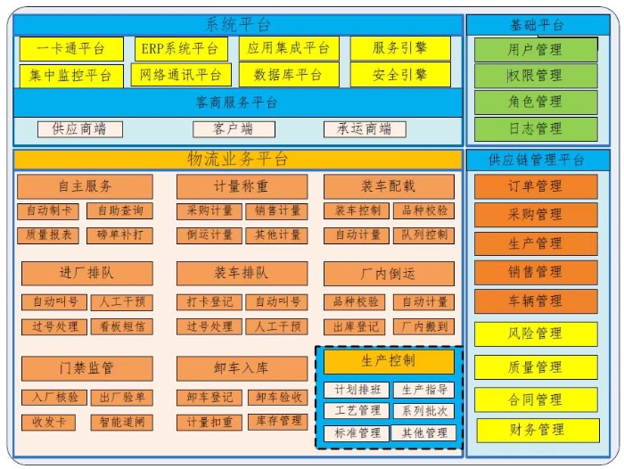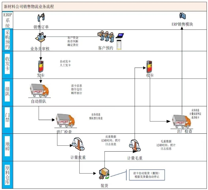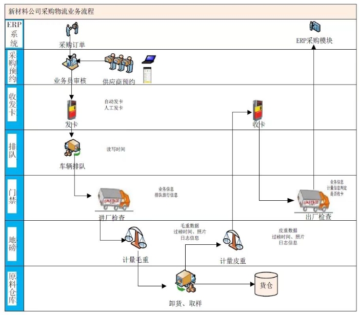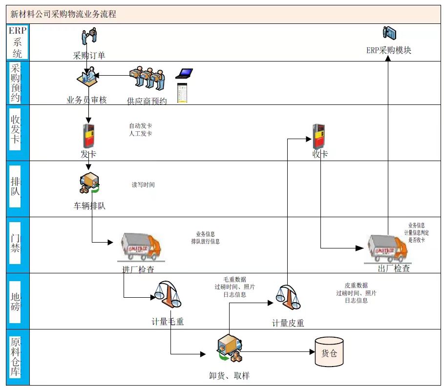 面向新材料企業的智能物流管理系統設計 王瑞江 朱曉霞 夏艷麗 張莉莉 摘要:以某環保新材料企業為例,回顧物流系統優化建設過程,從物流信息化需求入手,融合一卡通平臺、企業ERP 系統與現代管理思想,建立了一個現代化、智能化的新型企業物流管理系統,旨在解決企業物流規模日益增加的需求,提高物流運作效率,力求為相關企業以兩化融合推動轉型高質量發展提供一些參考。 關鍵詞:智能物流管理系統;ERP 系統;一卡通平臺;系統設計;新材料企業 一、引言 兩化融合方興未艾,新一代信息技術高度融合先進管理思想,日益滲透實體經濟,形成新型的生產方式、商業模式和經濟增長點,激勵企業投身于物流信息化建設之中,通過信息化、智能化和精細化管控,引領企業物流管理模式革新,催生智能物流新范式,實現提質降本增效[1-2]。 眾多企業憑借敏銳嗅覺將智能物流、智能管控、供應鏈管理等技術應用在生產管理全過程,實現“產銷一體、管控銜接、三流協同”,提升質量控制技術、控制運營成本、完善物流管理機制、優化三流流程等,實現企業智能化物流管理新模式,為企業高質量發展創造條件。郭占山等利用物流一卡通平臺與企業ERP 無縫對接技術搭建了常山南方水泥有限公司的物流信息系統,實現了企業物流的集中管控[3]。俞樞根等以新型建材水泥廠為研究對象,構建了一個全過程無人干預的信息化管理系統,實現了企業產供銷的集成化、智能化管理[4]。周正文等采用B/S結構和Web服務系統設計了株洲時代新材料科技有限公司的物流運輸系統,有效解決了物流管理信息化難題[5]。余國林采用C/S架構設計了葛洲壩鐘祥水泥廠的物流信息系統,開發了車輛調度、道閘控制、過磅計量等一卡通平臺,并與企業ERP 形成無縫對接,提高了物流服務效率[6]。申世武和梁小波等分別以柳鋼礦石物流園區為面向對象,設計了一卡通車輛信息系統,規避了管理風險和操作漏洞,實現了企業物流全程監控及防范,提高了企業物流管理水平[7]。郭忍強提出了一個面向大型礦山企業物流的SOA系統結構,主要涵蓋了客服、倉儲、運輸配送、財務管理等功能模塊,強化企業物流管理水平,提高了企業運營效益[8]。 本文以某環保新材料企業為例,回顧物流系統優化建設過程,融合互聯網、物聯網、大數據、ERP系統和一卡通平臺等新一代信息技術,探索出的一種工業化與信息化深度融合的全新模式,建立了一個現代化、智能化的物流管理系統,旨在解決企業日益寬泛的規模需求,提高物流運作效率,力求為相關企業以兩化融合推動轉型高質量發展提供一些參考。 二、企業介紹與需求分析 (一)企業介紹 某新材料公司是以石灰石(碳酸鈣)原材料深加工為主導產業的企業,石灰石開采加工生產線,年處理能力1000萬t,未來獲取臨近礦產資源產能可達到年生產能力2000萬t,主要包括綠色建材、脫硫劑、冶金溶劑、高端(輕、重)碳酸鈣填料、工業廢酸處理劑石灰以及食品級碳酸鈣填料等產品。目前,生產區建成了4條鈣質脫硫劑生產線,年生產鈣質脫硫劑330萬t,冶金溶劑生產線1條年產400萬t,工業廢酸處理劑生產線1條年產100萬t,綠色建筑材料生產線年產100萬t,加上其他原料30萬t進廠,累計物流量年累計1000萬t,按照工作日計算每天4.5萬t,平均日進出廠區的車輛近1000輛左右,物流規模大。另外,廠區布局了6臺電子地磅,3條田字環形物流通道,12個散、袋裝車臺面,1個電子閘門(人車分離),門外設有停放100輛運輸車的暫停區,聯通外界3.8km外的交通道路的是一條寬度約4m的鄉級道路,廠區來往車輛較多,外聯道路狹窄、彎多復雜,易發生交通堵塞和事故,物流車輛組織難度極大。 (二)需求分析 新材料公司產品需通過多種車輛運輸,作業時需要與生產、計量、裝卸、倉儲、門禁、打卡、核算等環節的設備協同運行,同時要統籌在途車輛的精確調度和精準計量。因此,系統設計的總體目標是以現代信息技術為支撐,以互聯共享、統籌優化、集中管控、協同集成為基礎,在滿足管理規范、生產安全、服務和諧的前提下,打造一個融合管理、智能化、信息化和數字化為一體的智能物流平臺,實現企業穩定生產、提質增效和物流通暢,有助于提升企業的管理水平。經過實際業務摸底,公司物流管理系統的需求如下: 1.系統面向客戶、企業本身、物流承運商等用戶,能夠集成三者信息,互聯互通,實現信息共享。 2.系統整體功能簡易化、流程標準化、數據信息精準化、管理可視化。 3.系統滿足企業多業務模塊處理的便捷性、協同性。 4.系統能夠無縫匹配企業內部ERP 系統,一卡通平臺,實現“產銷一體、管控有序、三流同步”,實現在財務、銷售、生產、庫存、采購、計量、運輸等方面的智能化管控。 5.系統能夠解決廠區內外物流通道通達性,不出現堵塞、事故以及其他可能存在的安全隱患。 6.能夠利用移動互聯網,實現各環節間信息共享的及時性、便利性及精準性。 三、物流系統設計架構 (一)總體設計方案 針對新材料企業現狀與需求,系統覆蓋了采購、生產、銷售、計量、倉儲、物流、質檢、能源等企業生產經營的各個環節,對企業供應鏈物流進行全程管理。系統規劃設計方案,一方面采用互聯網、云計算、大數據及移動通信技術等新一代信息技術,在企業原有ERP平臺的基礎上,結合一卡通物流系統的功能模塊[9],實現企業生產經營