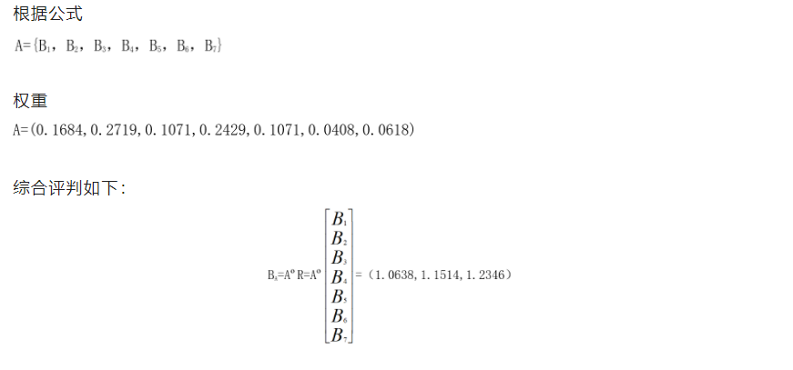 評價指標確定后,將評價因素組成一個因素集合B,B={B1,B2,B3,…,Bn},其中,Bi(i=1,2,3,…,n)為評價指標因素,n為同一層次上評價因素的個數 。