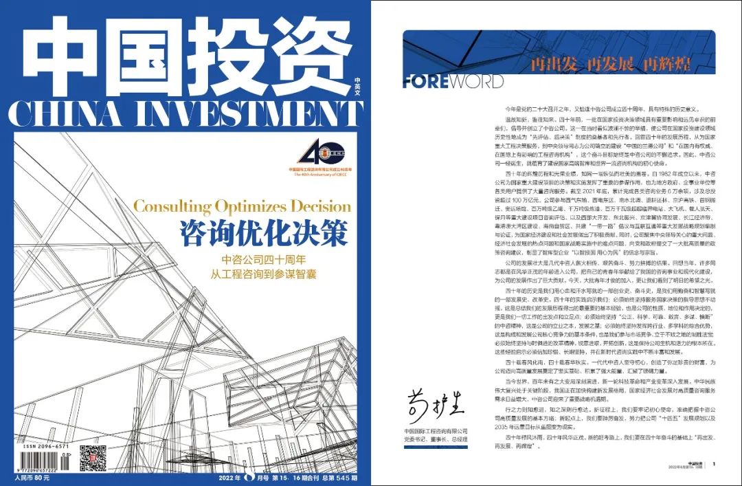 【中咨四十周年專刊 · 卷首語】再出發 再發展 再輝煌|中國投資