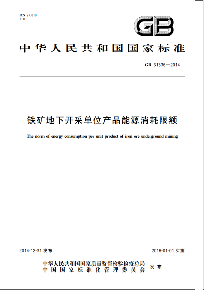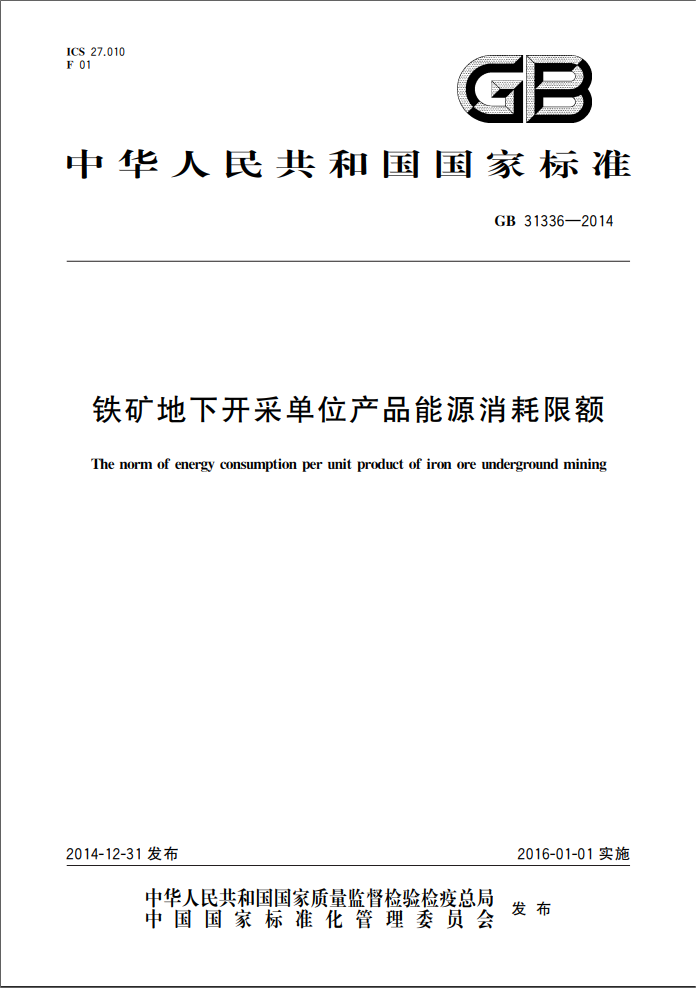 本標準規定了鐵礦地下開采單位產品能源消耗(以下簡稱能耗)限額的技術要求、統計范圍和計算方法、節能管理與措施。