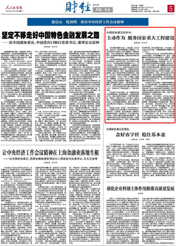 △全國政協委員,中咨公司黨委書記、董事長茍護生 “黨中央團結帶領全黨全國人民有效應對各種風險挑戰,經濟回升向好,前三季度GDP增長5.2%,對全球經濟增長的貢獻超過30%。”茍護生表示,從前三季度投資數據看,全國固定資產投資同比增長3.1%,體現出政府投資作為宏觀政策逆周期調節的重要抓手,對穩增長調結構所發揮的關鍵作用。其中,基礎設施建設投資數據亮眼,重大工程對投資增長的貢獻率進一步提升。今年以來,按照中央決策部署,有關部門和地區加快推進“十四五”規劃102項重大工程建設,川藏鐵路、引江濟淮、金沙江上游外送特高壓通道、大型石化基地等一批重大交通、水利、能源工程相繼開工或投產。“國內需求表現也可圈可點。如最終消費支出對經濟增長貢獻率達到83.2%,資本形成總額對經濟增長貢獻率達到29.8%,有效對沖了外需收縮壓力。”茍護生補充道。 中央經濟工作會議指出,進一步推動經濟回升向好需要克服一些困難和挑戰,主要是有效需求不足,國內大循環存在堵點,外部環境的復雜性、嚴峻性、不確定性上升。面對挑戰,茍護生表示,我們要統籌國內國際兩個大局,統籌發展和安全,加快構建新發展格局。國內大循環要建立在內需主動力的基礎上,加快建設全國統一大市場。 他結合工作進一步表示,我們在咨詢工作中,發現部分地區仍然設置了不同的市場規則,招商引資、產業激勵、涉企優惠政策、稅費征收標準等存在差異。這些都是下一步工作重點關注的領域,只有針對國內大循環堵點精準發力,著力破除各種形式的地方保護和市場分割,才能提高國內大循環效率和水平。同時,面對復雜嚴峻的外部環境,我們還要堅定信心、守正創新,擴大高水平對外開放,在提高國際循環質量和水平上下功夫。 中央經濟工作會議將“科技創新引領現代化產業體系建設”作為首要重點工作,提出“以顛覆性技術和前沿技術催生新產業、新模式、新動能,發展新質生產力”。在茍護生看來,生產力是人類文明發展的基礎,科技是第一生產力,是實施創新驅動發展戰略的內在機理。新質生產力代表了生產力的躍遷,是以顛覆性前沿性科技創新和產業創新為根本前提,數字時代生產工具發生本質性變化的生產力。我國原創性創新少,核心技術掌控與世界先進水平相比仍有差距,技術交流又面臨新阻力。因此,我們必須堅定不移走自主創新道路,更好發揮新型舉國體制優勢,加強國家重大科技基礎設施建設,加快發展戰略性新興產業和培育未來產業,為經濟長期向好提供源源不斷的內在動力。 中央經濟工作會議提出“要激發有潛能的消費,擴大有效益的投資,形成消費和投資相互促進的良性循環”。“擴大有效益的投資是以習近平同志為核心的黨中央深化新時代做好經濟工作的規律性認識基礎上對投資工作提出的更高要求,也是政府投資必須錨定的核心目標,這是一種負責任的投資。”茍護生如是說。 展望未來,茍護生表示,我們將以高水平工程咨詢貫徹落實會議精神,既要增強憂患意識,更要增強信心底氣,緊緊圍繞國家重大戰略部署,聚焦國家重大科技基礎設施、國家水網、城市更新、戰略性新興產業、防洪減災、共建“一帶一路”等領域重大工程,做好科學研究和咨詢論證,為高效推進“十四五”規劃102項重大工程建設和謀劃“十五五”重大工程儲備提供智力支撐,利用一切有利條件,能多干就多干一些,努力以自身工作的確定性應對形勢變化的不確定性,為以中國式現代化全面推進強國建設、民族復興偉業作出新的更大貢獻。 | |||||