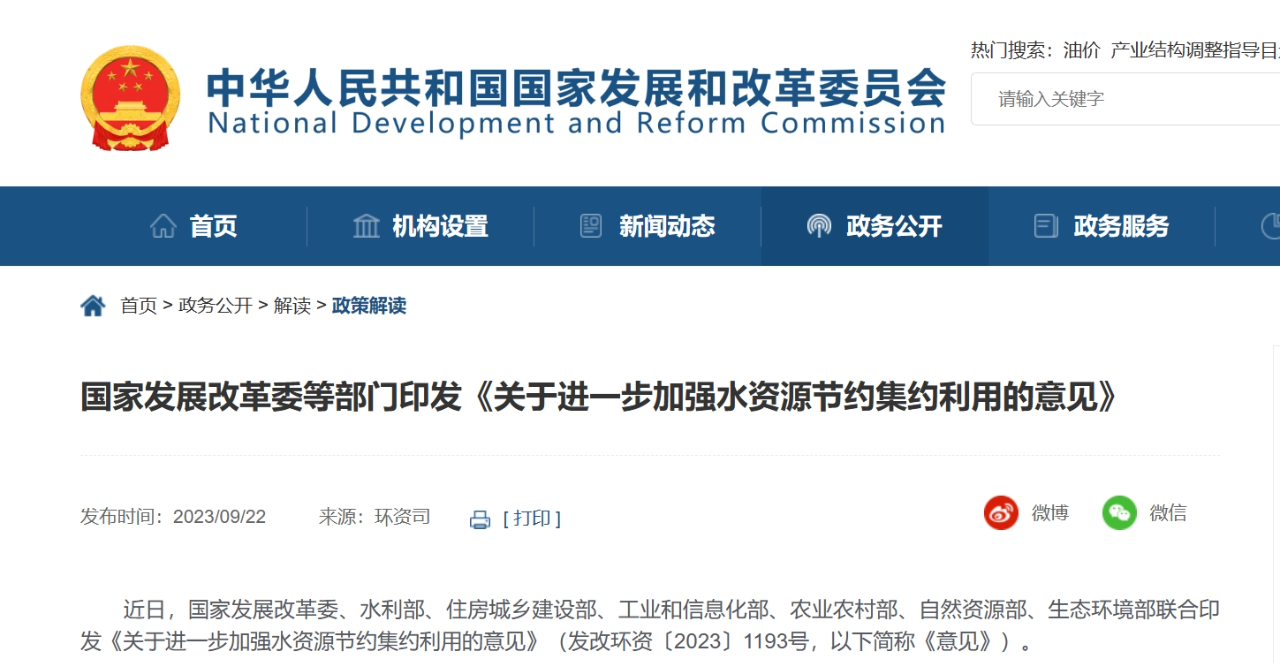 落實全面節約 堅持四水四定 進一步加強水資源節約集約利用 ——《關于進一步加強水資源節約集約利用的意見》專家解讀 加強水資源節約集約利用,推動全過程、全領域、全社會節水,是深入貫徹習近平生態文明思想、實施全面節約戰略的重要舉措,是緩解我國水資源供需矛盾、保障水安全的必然選擇。近日,國家發展改革委、水利部、住房城鄉建設部、工業和信息化部、農業農村部、自然資源部、生態環境部等部門聯合印發《關于進一步加強水資源節約集約利用的意見》(發改環資〔2023〕1193號,以下簡稱《意見》),強化“四水四定”,對推進水資源總量管理、科學配置、全面節約、循環利用,深入實施國家節水行動作出了新的部署,凸顯以下四大亮點。 01. 強調配取用排節水,強化全過程水資源節約 《意見》提出,在配置階段,加強用水總量和強度雙控,加快開展跨行政區江河流域水量分配,堅持先節水后調水,把節水作為受水區的根本出路;在取水階段,嚴格建設項目水資源論證,依法審批取水許可,整治違法取水問題;在用水階段,健全用水定額體系,做好用水定額動態評估和更新,落實計劃用水,提高各領域用水效率;在回用階段,推行非常規水源納入水資源統一配置,缺水城市積極拓展再生水利用領域和規模,具備條件的地方充分利用海水、礦井水、雨水等非常規水源。水資源節約集約利用工作貫穿全生命周期,涵蓋了資源配置階段的科學性、利用過程的先進性以及回用環節的可行性,旨在推行全過程管理和全鏈條節約。 02. 創新性提出生態景觀節水,強化全領域水資源節約 近年來,我國用水結構不斷優化,生態用水在用水總量中占比逐年增加,目前已超過居民生活用水的一半,因此生態景觀節水的重要性不可忽視。此外,隨著城市建設步伐的加快,城市景觀綠化面積迅速擴大,不恰當的綠化植被和人工水景消耗了大量的水資源?!兑庖姟穼⑸鷳B景觀節水與農業農村、工業、城鎮三大傳統用水領域并列,補上了全領域節水的最后一塊拼圖,提出要堅持以水定綠,堅持山水林田湖草沙一體化保護和系統治理,統籌推進水源涵養、國土綠化、防沙治沙、濕地修復、水土保持;嚴控景觀用水,嚴禁違背自然規律挖湖造景,限制盲目擴大景觀和娛樂場地的水域面積,黃河流域嚴控新建親水公園。 03. 關注節水產業,明確節水增效雙提升新抓手 發展節水產業經濟新業態,協調推進“產業節水”與“節水產業”協同發展,是推動水資源高效利用與產業質量效益共同提升的有力抓手。我國一直把發展節水產業放在重要位置,《國家節水行動方案》中多次強調加快成果轉化和產業培育,《意見》專門成章并提出細化措施支持節水產業發展壯大,如加強技術研發應用,支持舉辦節水創新發展大會及高新技術成果展,推進技術產業化;推廣節水產品,實施水效標識,推行綠色產品政府采購,依法打擊水效虛標,推進節水信息化管理;推動節水服務產業發展,積極開展用水權交易,落實交易收益分配制度,在公共機構、高耗水行業、供水管網漏損控制等領域推廣合同節水管理。 04. 突出問題導向,聚焦短板弱項破解難點堵點 《意見》秉持問題導向,聚焦亟待解決的難點堵點,緊盯細分領域、重點區域和短板弱項,有針對性地提出了應對舉措。如我國在農業節水方面已有高效節水灌溉技術、農田水利工程等有力措施,但農業用水計量與監測設施建設仍是薄弱環節,《意見》提出,5萬畝以上大中型灌區渠首取水口要實現在線計量,大中型灌區應在產權分界點安裝計量設施,高標準農田和高效節水灌溉項目要配套實用易行的計量設施,進一步細化計量單元。又如,公共機構是用水大戶,也是節水示范引領的重要載體,近來會議場所“半瓶水”浪費現象備受關注,《意見》對此提出,公共機構率先垂范,提高公共機構用水計量信息化水平,在機關、學校、醫院等重點領域實施水效領跑者引領行動,深入推進節水型高校建設,倡導減少瓶裝飲用水浪費。 《意見》在全面節約戰略下,為進一步推進水資源節約集約利用深化了方向,細化了重點,實化了措施。下一步建議以《意見》為引領,各地區各部門形成工作合力統籌推進,加快落實,強化政策資金保障,以水資源可持續利用支撐我國實現高質量發展。 注:原文載自國家發展改革委微信客戶端 | |||||