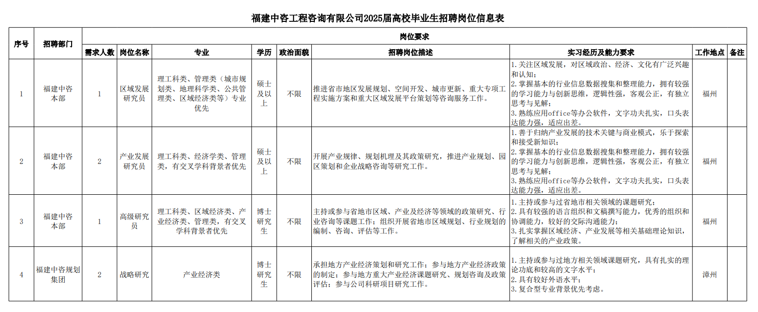 中國國際工程咨詢有限公司所屬企業2025年校園招聘公告(招聘已結束) | ||||