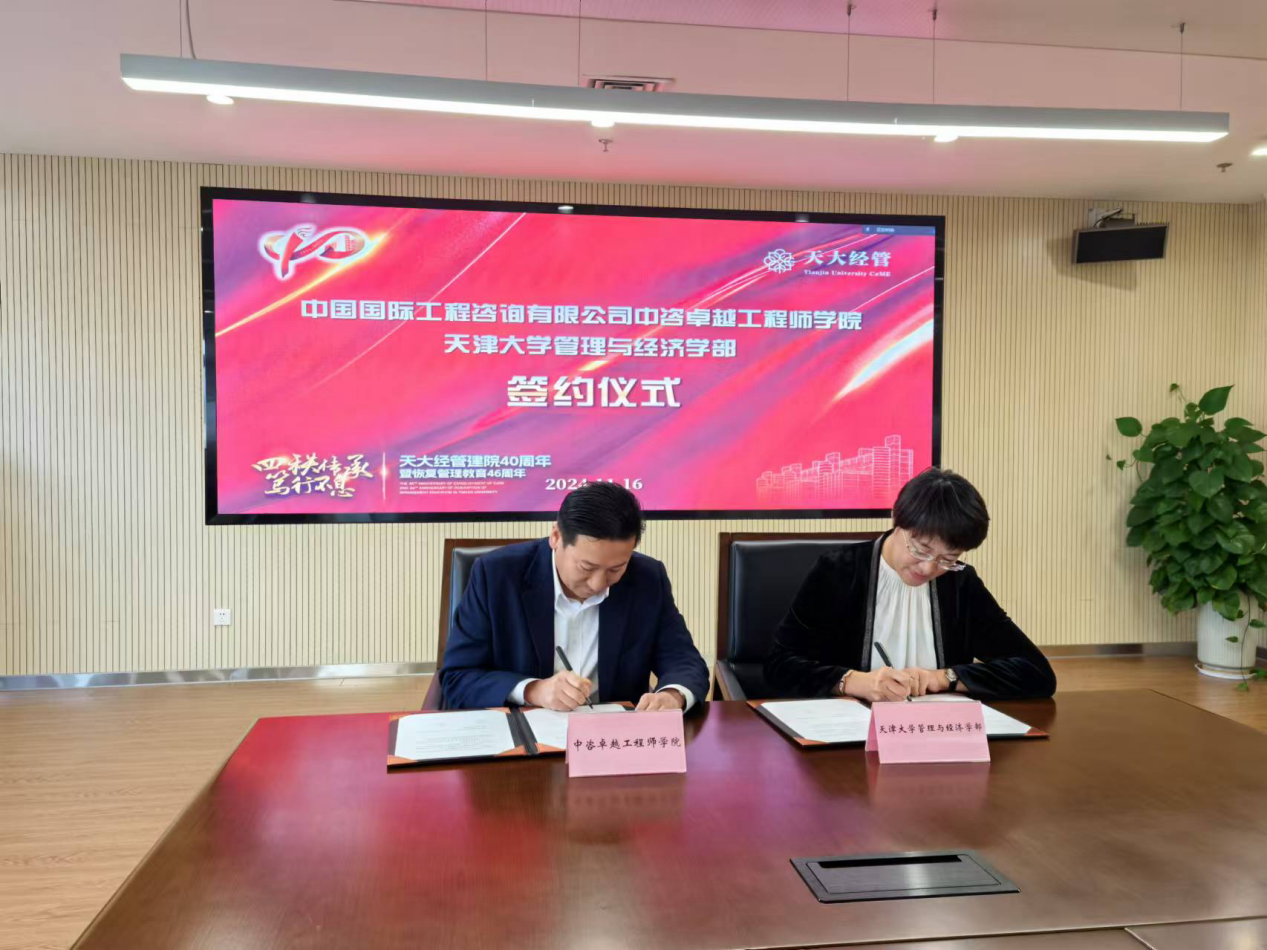 中咨卓越工程師學院與天津大學管理與經濟學部合作簽約儀式暨“中咨-天大”經管精品課首講圓滿舉行
