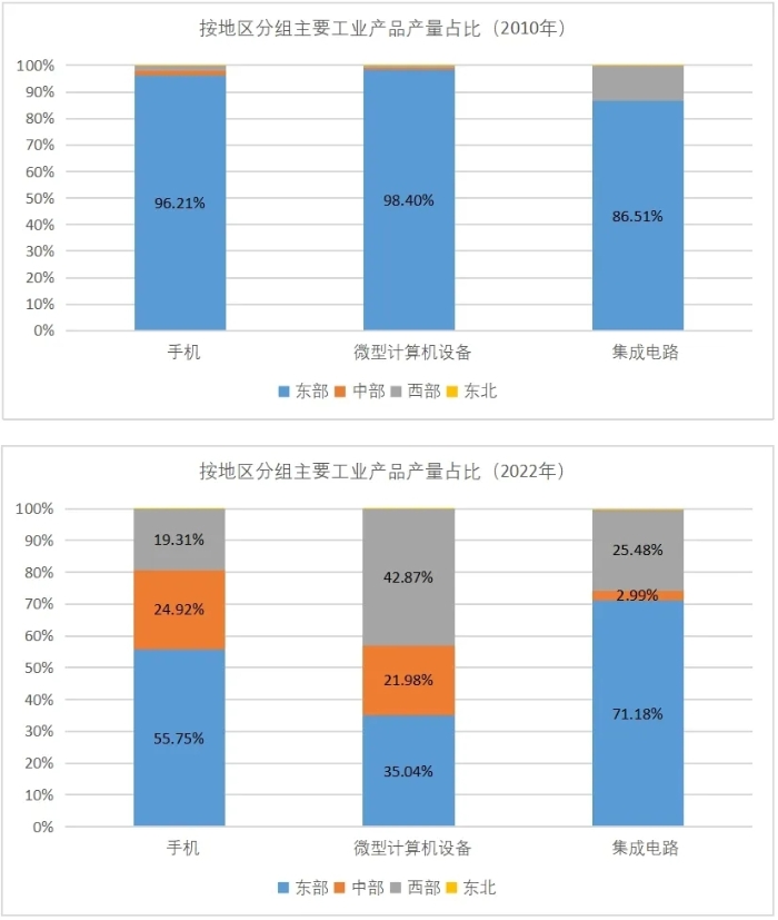 新形勢(shì)下我國(guó)高質(zhì)量推動(dòng)產(chǎn)業(yè)轉(zhuǎn)移 和優(yōu)化生產(chǎn)力布局的幾點(diǎn)思考 車璐 產(chǎn)業(yè)轉(zhuǎn)移關(guān)系著我國(guó)重大生產(chǎn)力布局和產(chǎn)業(yè)鏈、供應(yīng)鏈安全穩(wěn)定。當(dāng)前,我國(guó)制造業(yè)面臨發(fā)達(dá)國(guó)家尋求產(chǎn)業(yè)鏈“去中國(guó)化”和發(fā)展中國(guó)家產(chǎn)業(yè)發(fā)展體系逐步完善的“雙向擠壓”。高質(zhì)量推動(dòng)產(chǎn)業(yè)轉(zhuǎn)移,更有針對(duì)性地引導(dǎo)生產(chǎn)要素合理流動(dòng)和優(yōu)化配置,對(duì)優(yōu)化我國(guó)生產(chǎn)力空間布局、促進(jìn)區(qū)域協(xié)調(diào)發(fā)展具有重要意義,也是保持我國(guó)產(chǎn)業(yè)鏈供應(yīng)鏈安全穩(wěn)定、建設(shè)現(xiàn)代化產(chǎn)業(yè)體系和構(gòu)建新發(fā)展格局的迫切需要。 一、我國(guó)區(qū)域間產(chǎn)業(yè)轉(zhuǎn)移呈現(xiàn)的新趨勢(shì) 我國(guó)經(jīng)濟(jì)發(fā)展的空間不均衡引發(fā)了國(guó)內(nèi)不同區(qū)域間的產(chǎn)業(yè)轉(zhuǎn)移,這種區(qū)際產(chǎn)業(yè)轉(zhuǎn)移既是區(qū)域間要素稟賦動(dòng)態(tài)變化的體現(xiàn),也是促進(jìn)欠發(fā)達(dá)地區(qū)發(fā)展的重要路徑。近年來,國(guó)內(nèi)產(chǎn)業(yè)轉(zhuǎn)移層級(jí)穩(wěn)步提升,從勞動(dòng)密集型產(chǎn)業(yè)的單向轉(zhuǎn)移,逐漸呈現(xiàn)出綜合轉(zhuǎn)移、雙向轉(zhuǎn)移等新趨勢(shì)。 (一)中西部地區(qū)承接傳統(tǒng)產(chǎn)業(yè)轉(zhuǎn)移和產(chǎn)業(yè)升級(jí)并行 我國(guó)產(chǎn)業(yè)轉(zhuǎn)移的結(jié)構(gòu)不斷升級(jí),中西部地區(qū)除主要承接?xùn)|部地區(qū)調(diào)整優(yōu)化的勞動(dòng)密集型產(chǎn)業(yè)外,還積極利用產(chǎn)業(yè)基礎(chǔ)和資源稟賦優(yōu)勢(shì),加大電子信息等資本密集型和技術(shù)密集型產(chǎn)業(yè)承接力度,整體呈現(xiàn)出產(chǎn)業(yè)轉(zhuǎn)移與產(chǎn)業(yè)升級(jí)并行趨勢(shì)。近年來,戰(zhàn)略性新興產(chǎn)業(yè)也開始向中西部核心城市集聚,如合肥芯片產(chǎn)業(yè)、武漢光纖通信產(chǎn)業(yè)、西安半導(dǎo)體產(chǎn)業(yè)、重慶新能源汽車產(chǎn)業(yè)等。2010-2022年,我國(guó)東部地區(qū)手機(jī)、微型計(jì)算機(jī)、集成電路等主要工業(yè)產(chǎn)品產(chǎn)量占全國(guó)比重分別下降40、63和15個(gè)百分點(diǎn);而中部地區(qū)三種產(chǎn)品占比分別上升23、21和3個(gè)百分點(diǎn),西部地區(qū)三種產(chǎn)品占比分別上升18、42和12個(gè)百分點(diǎn)。 數(shù)據(jù)來源:根據(jù)《中國(guó)統(tǒng)計(jì)年鑒》《中國(guó)工業(yè)統(tǒng)計(jì)年鑒》相關(guān)數(shù)據(jù)整理計(jì)算。 圖1 2010-2022年我國(guó)分區(qū)域電子信息類主要產(chǎn)品產(chǎn)量占比 (二)資源環(huán)境要素成為東部地區(qū)產(chǎn)業(yè)轉(zhuǎn)移重要考量 隨著城市化的不斷推進(jìn)和經(jīng)濟(jì)的快速發(fā)展,東部地區(qū)能源、土地、環(huán)境等要素供給日趨緊張,碳排放的限制也會(huì)加快部分高耗能產(chǎn)業(yè)向原材料豐富、新能源富集的中西部地區(qū)疏散轉(zhuǎn)移。近年來,全國(guó)電解鋁“北鋁南移、東鋁西移”,云南依托可再生能源資源優(yōu)勢(shì)主動(dòng)承接電解鋁產(chǎn)能轉(zhuǎn)移,全省電解鋁產(chǎn)能接近全國(guó)的五分之一。全國(guó)實(shí)施“東數(shù)西算”工程,8個(gè)國(guó)家算力樞紐節(jié)點(diǎn)西部地區(qū)占據(jù)5個(gè),10個(gè)國(guó)家數(shù)據(jù)中心集群西部地區(qū)占據(jù)7個(gè)。此外,玻璃、塑料及化工產(chǎn)品產(chǎn)業(yè),受東部地區(qū)環(huán)境容量和環(huán)境監(jiān)管限制而向中西部地區(qū)轉(zhuǎn)移。2010-2022年,東部地區(qū)平板玻璃、初級(jí)形態(tài)的塑料、化學(xué)農(nóng)藥原藥、乙烯、純堿、燒堿等主要工業(yè)產(chǎn)品產(chǎn)量占全國(guó)比重分別下降14、14、2、7、11和5個(gè)百分點(diǎn),而西部地區(qū)占比分別上升5、13、4、0.2、3和7個(gè)百分點(diǎn)。 數(shù)據(jù)來源:根據(jù)《中國(guó)統(tǒng)計(jì)年鑒》《中國(guó)工業(yè)統(tǒng)計(jì)年鑒》相關(guān)數(shù)據(jù)整理計(jì)算。 圖2 2010-2022年我國(guó)分區(qū)域原材料類主要產(chǎn)品產(chǎn)量占比 (三)東中西及東北地區(qū)產(chǎn)業(yè)雙向轉(zhuǎn)移和區(qū)域間合作 隨著我國(guó)基礎(chǔ)設(shè)施建設(shè)大發(fā)展,中西部交通運(yùn)輸條件與東部的差距在不斷縮小,特別是互聯(lián)網(wǎng)、移動(dòng)通信等新型基礎(chǔ)設(shè)施的發(fā)展,使得企業(yè)可以在不同地區(qū)通過遠(yuǎn)程辦公、在線會(huì)議等進(jìn)行業(yè)務(wù)協(xié)作和管理,“遠(yuǎn)程研發(fā)+異地中試+異地生產(chǎn)+異地操作”等模式應(yīng)運(yùn)而生。以汽車產(chǎn)業(yè)為例,國(guó)內(nèi)知名車企相繼進(jìn)入中西部,在重慶、成都、武漢、長(zhǎng)沙、鄭州等地建成了相當(dāng)規(guī)模的整車和零部件生產(chǎn)基地,但其研發(fā)中心依然設(shè)置在東部沿海發(fā)達(dá)地區(qū)。同時(shí),中西部和東北地區(qū)也可以通過在東部地區(qū)設(shè)立研發(fā)基地,快速獲取發(fā)達(dá)地區(qū)人才、區(qū)位、資金優